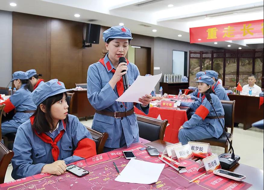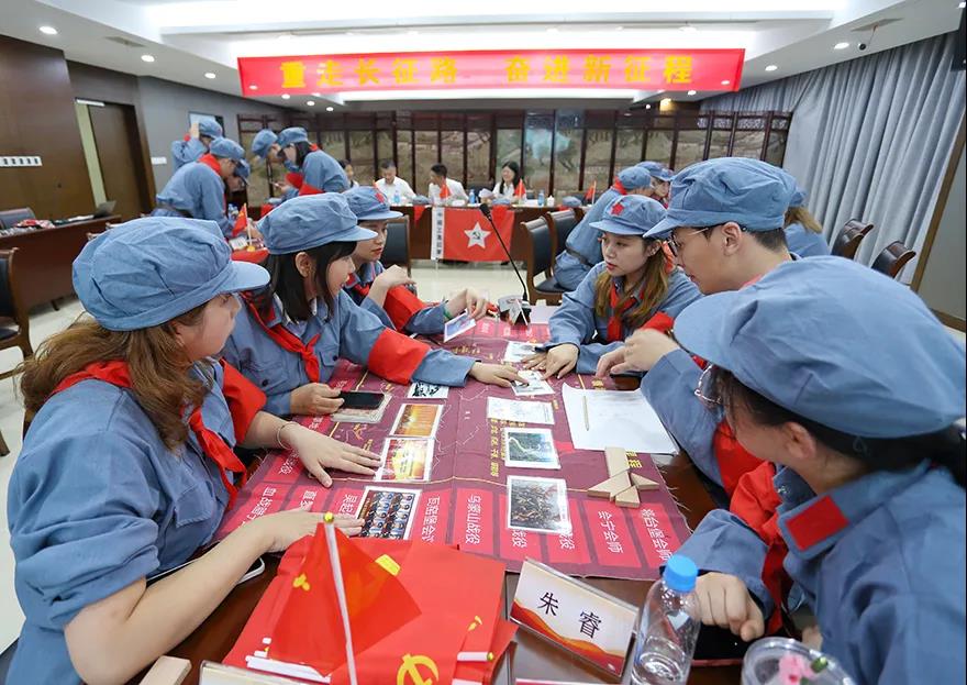 課程以講授、影片片段觀摩、模擬推演、小組討論、互動演示等形式,從歷史時間、戰役模擬、精神提煉、思想踐行等方面展開學習?;顒蝇F場,每位學員都深入其中,仿佛置身于那個戰火紛飛的年代,真實演繹了“面臨敵軍圍追堵截”“經歷湘江血戰”“召開遵義會議”“上演飛奪瀘定橋”等重要事件,進一步領悟了革命先輩堅定信仰、不怕犧牲,勇往直前、堅忍不拔,眾志成城、百折不撓的偉大長征精神。