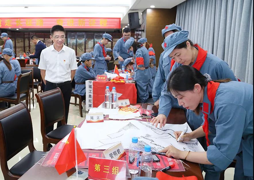 本次沙盤模擬演練活動,通過沉浸式的學習研討和考驗協作能力的趣味任務,用“不一樣的講黨史”讓大家深入了解了長征的歷史背景,并能夠親身參與、切實體驗長征路上的艱難險阻,從而真正感受到革命先輩創業之艱難,引領大家把敬仰和感動轉化為奮進有為、干事創業的精神動力,以更加飽滿的熱情、昂揚的斗志、務實的作風,立足本職,扎實工作,奮力走好新時代的長征路。