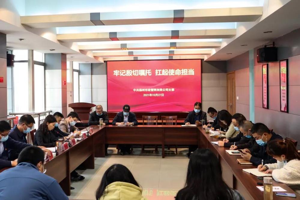 10月27日下午,市政管網公司黨支部召開中心組學習擴大會議,專題學習市委書記張寶娟在中國共產黨揚州市第八次代表大會上的講話精神。公司領導班子、中層干部、全體黨員參加會議。