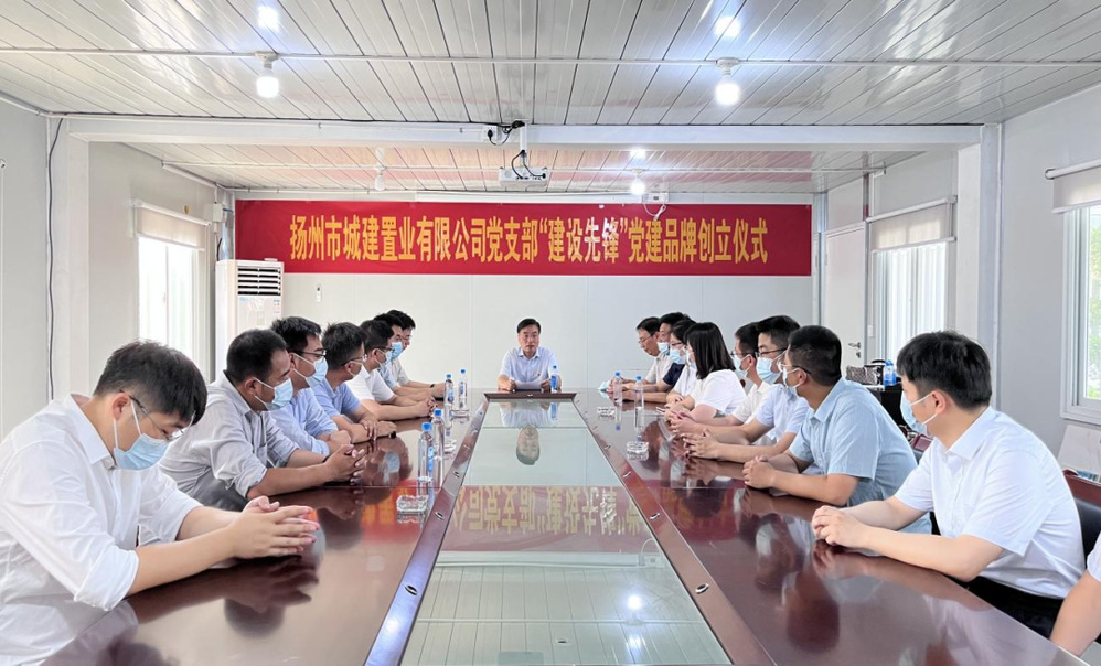 為進一步加強支部黨建工作,充分發揮國有企業黨建工作引領和黨組織的政治核心作用,實現黨建工作與業務工作深度融合,引導廣大黨員干部立足崗位,敬業奉獻。置業公司黨支部于7月13日上午在揚州頤和醫療健康中心項目現場會議室舉行“建設先鋒”黨建品牌啟動儀式。置業公司黨支部書記宣讀了黨建品牌創建方案并提出相關要求。公司各部室、各項目部黨員及頤和臨時黨支部黨員代表參加本次活動。