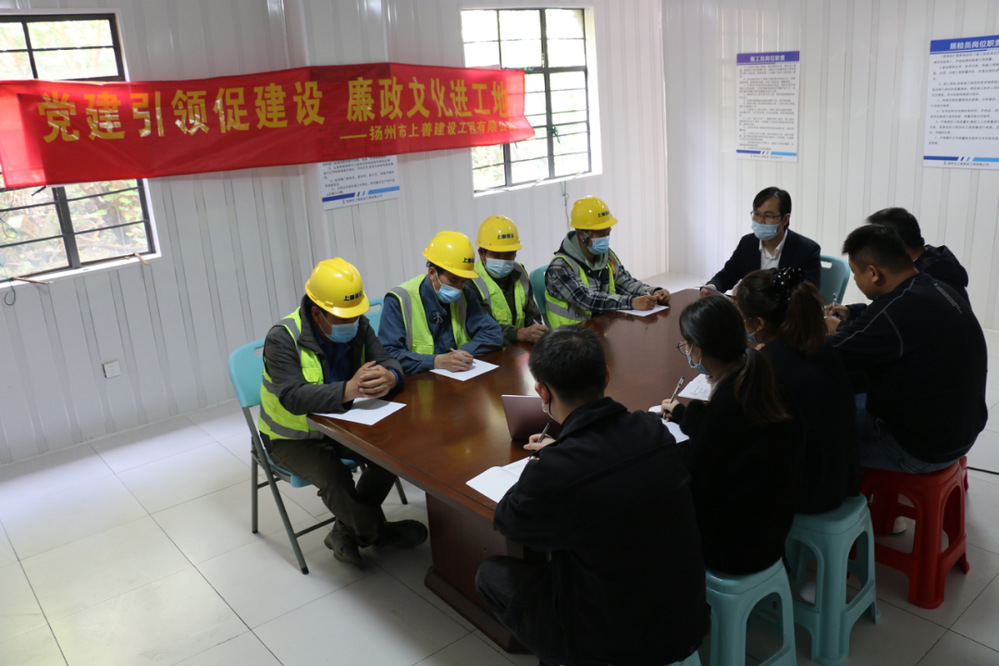 為不斷強化黨員干部、重點崗位職工的廉潔自律意識,10月20日下午,在上善公司金泰路工程項目部開展了“黨建引領促建設 廉政文化進工地”主題黨日活動,公司黨支部副書記出席了活動。
