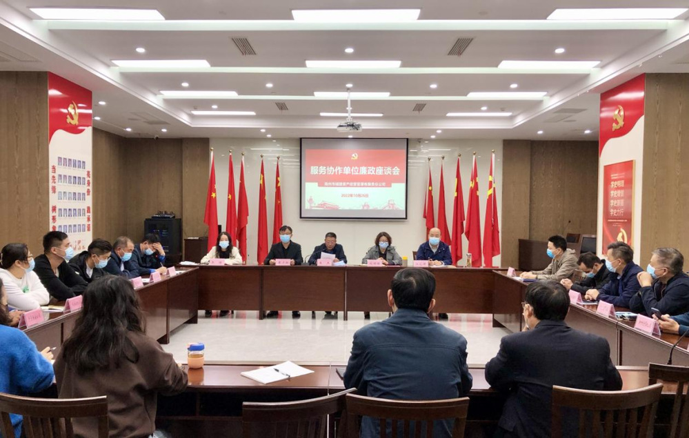 為持續抓好公司黨風廉政建設工作,進一步提升廉政風險防控意識,全面落實從嚴治黨主體責任,根據集團廉政工作有關要求,10月26日,資產公司組織召開了服務協作單位廉政座談會。公司聯合黨支部支委班子成員,相關處(部)室和物業公司負責人,公司紀檢監察員以及20家服務協作單位負責人(代表)參加了座談會。