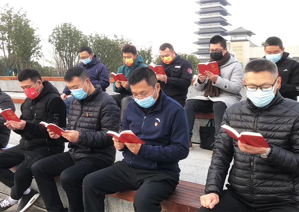 在公園法治宣傳園地,揚州中燃公司第四、第五黨支部書記向大家贈送了《中華人民共和國民法典》,隨后組織大家集中學習了黨的二十大報告要點和《民法典》部分章節。