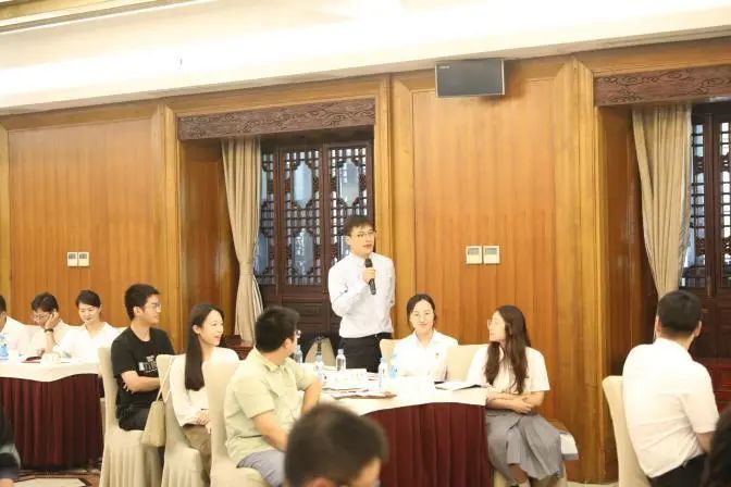 在之后的我點你答和分組討論環節,大家圍繞文旅融合發展、街區運營、綠色低碳新業態、大運河十里外灘和小秦淮河項目建設等話題展開討論,并就推動集團及自己所在企業的高質量發展獻出妙計良策,現場氛圍活躍,與會青年代表踴躍發言,紛紛提出自己的看法。集團領導針對青年代表的精彩發言,現場與青年代表們深入交流互動。