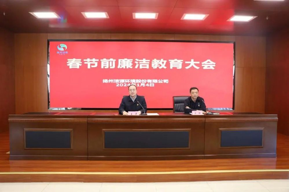 1月4日下午,潔源環境公司召開春節前廉潔教育大會,公司領導班子全體成員、全體中層干部及助理、重點崗位人員和供應商代表參加會議。