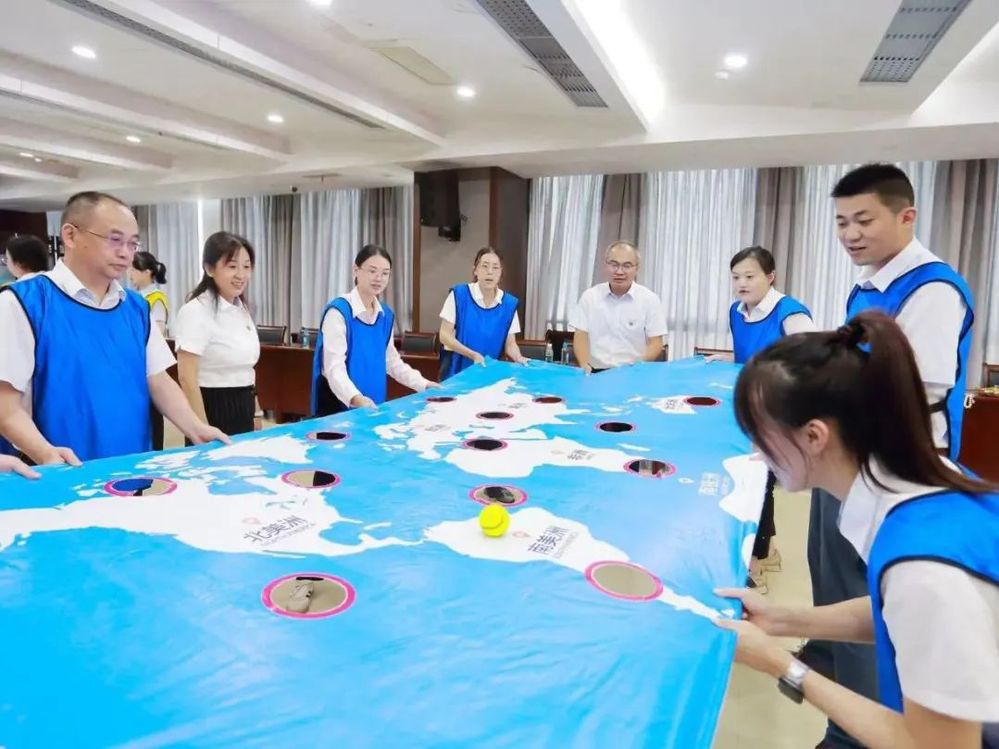 此次共建活動在歡快輕松的氛圍中進行,為充分調(diào)動大家的參與熱情,在主持人熱情地引導下,大家首先進行了熱身。熱身活動后,揚州中燃公司和三家銀行組建三支團隊依次開展“環(huán)游世界八十天”、“達芬奇密碼”、“聯(lián)合攻城”等一系列團隊協(xié)作競賽。大家在競賽互動中不斷磨合,增強了彼此之間的信任感和團隊凝聚力。“聯(lián)合攻城”作為競賽環(huán)節(jié)的最后一個項目,將現(xiàn)場的氣氛推到一個高潮。“聯(lián)合攻城”需要隊員們同時操控手中的繩子,利用三角形的鉤子,將現(xiàn)場的八塊積木堆積成一個柱子,堆積過程中手不可觸碰積木,且柱子不倒塌視為完成競賽,用時最少的隊伍獲勝。這項競賽既考驗了隊員們之間的團隊協(xié)作能力,又考驗了每一位隊員的心理素質(zhì)和應(yīng)對能力,大家在團結(jié)緊張活潑的氣氛中感受著充滿挑戰(zhàn)競賽過程和完成項目的喜悅。