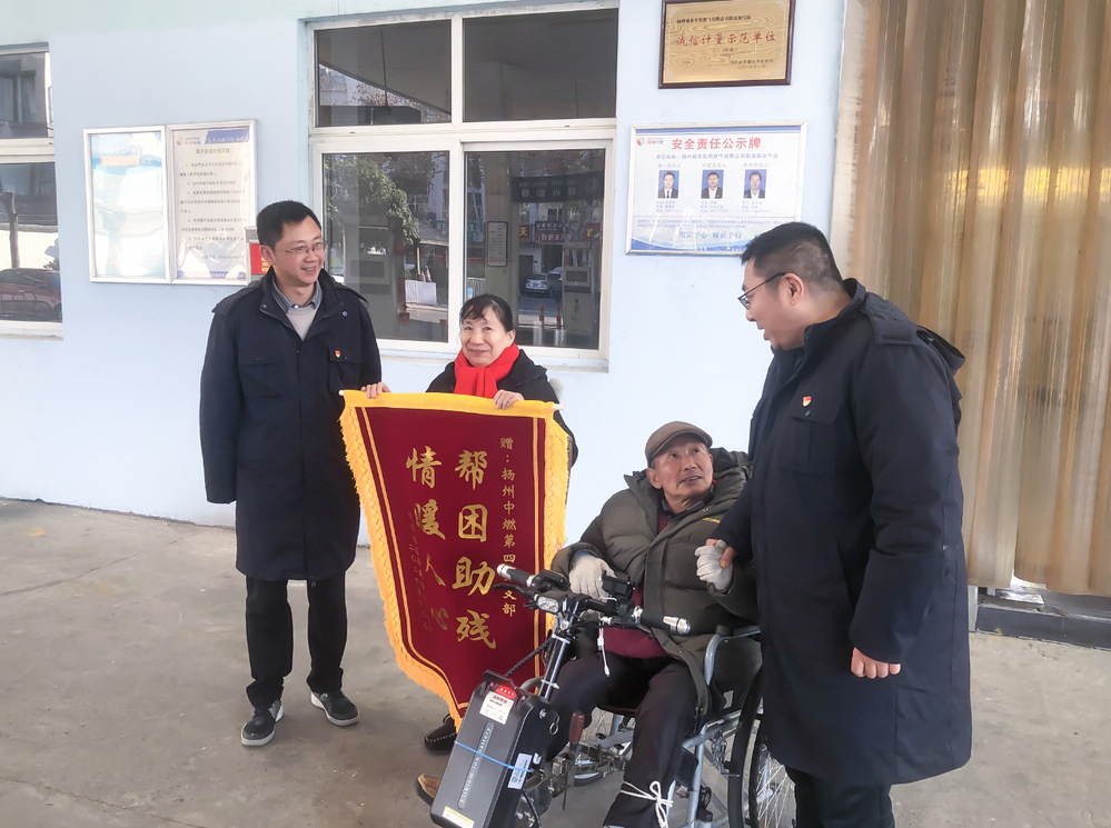 近日,連福社區(qū)徐鴻林和愛(ài)人將一面寫(xiě)有“幫困助殘 情暖人心”字樣的錦旗送到揚(yáng)州中燃公司第四黨支部,以表達(dá)對(duì)藍(lán)焰老兵志愿者對(duì)其日常生活的照料。