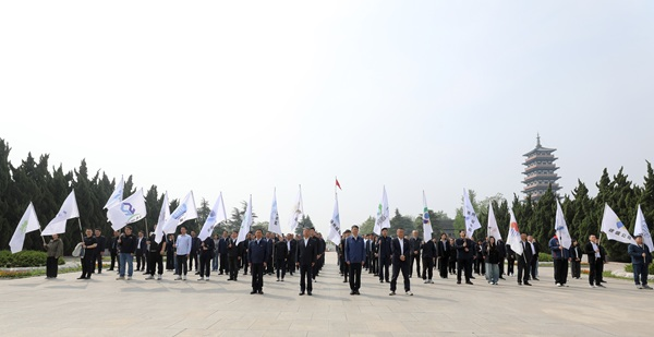在莊嚴肅穆的革命烈士陵園內,全體人員整齊列隊,向革命烈士紀念碑默哀鞠躬、敬獻花籃,并且繞紀念碑一周,瞻仰烈士紀念碑,表達對革命先烈深切的緬懷與崇敬之情。