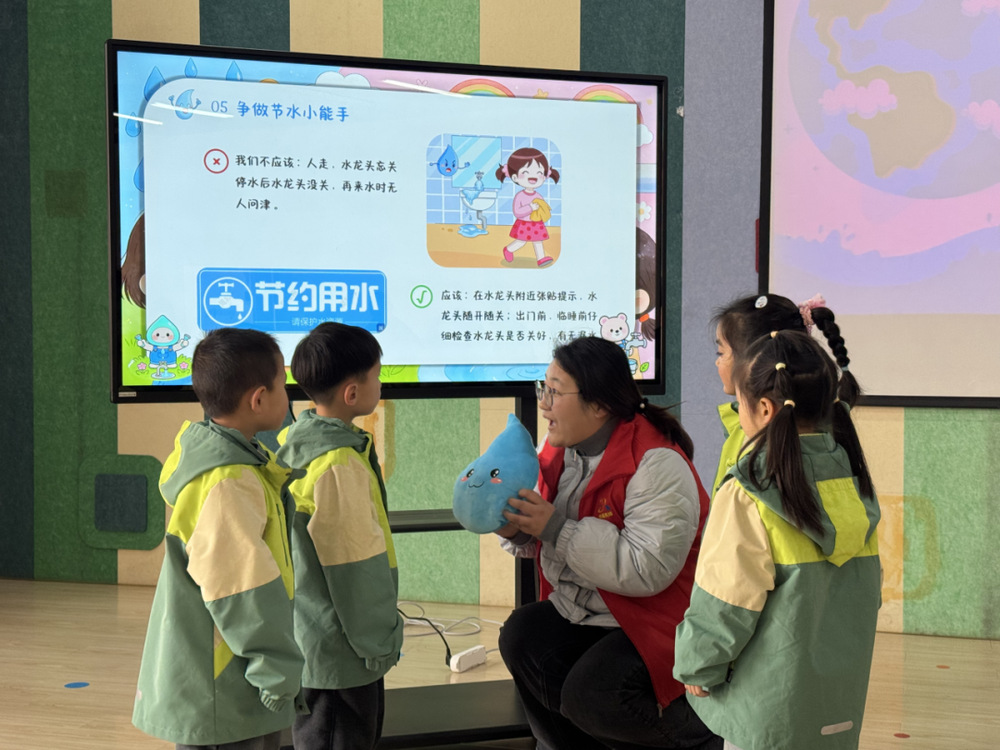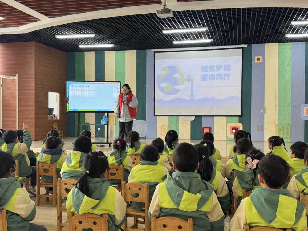 3月20日上午,561供水服務(wù)隊(duì)走進(jìn)杭集鎮(zhèn)幼兒園,開展“惜水護(hù)源,童心同行”用水節(jié)水知識小課堂,為孩子們帶來生動有趣的節(jié)水啟蒙課。課堂上,隊(duì)長吳留毅用趣味圖文PPT形式,通俗講解水資源現(xiàn)狀、節(jié)約用水小常識,通過“一水多用”互動問答,引導(dǎo)孩子思考節(jié)水意義,培養(yǎng)節(jié)水護(hù)水好習(xí)慣。