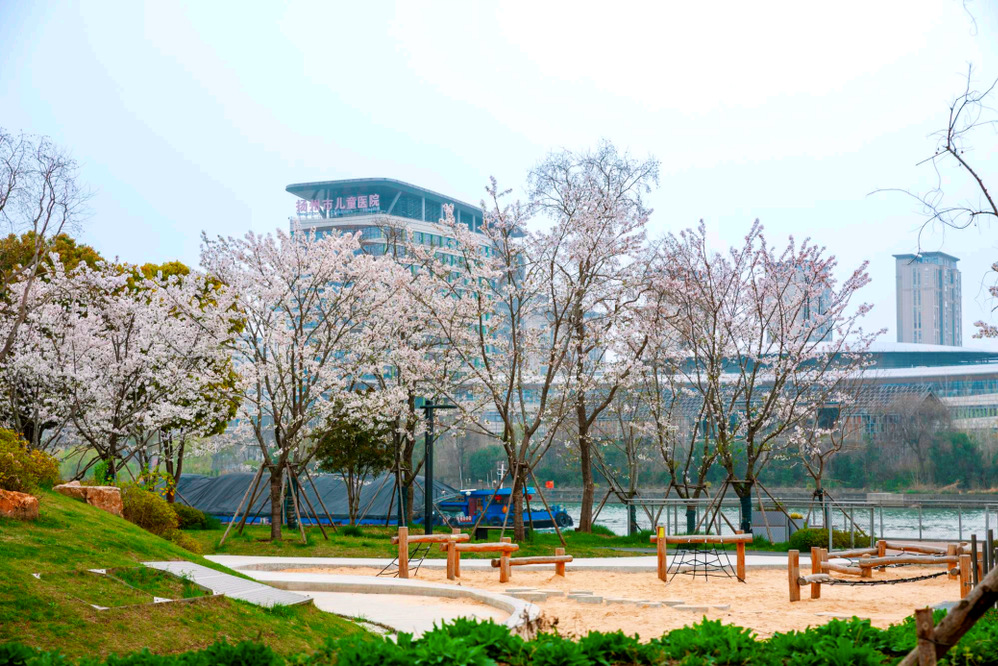除了賞櫻,“運河十里”示范段還精心布局了多元活動場景,既有跑步道、漫步道、兒童沙池等休閑空間,滿足市民、游客春日踏青、親子游玩等需求,更融入了愛奇藝樂園、洞穴咖啡廳、“禁止跳水”日咖夜酒等新業(yè)態(tài),讓春日時光既有自然賞味,也有現(xiàn)代意趣。